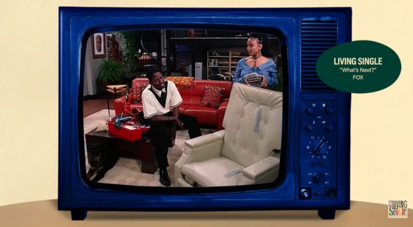 In season one, episode 21 (“Re-Living Single lists it as episode 23), I was too excited to see the King of Late Night (i.e., Arsenio Hall) and still hadn’t gotten over “A Different World” ending. Seeing Kim Reese (played by Charnele Brown) was also too much excitement for me. I forgot all about Kyle’s pet allergy complaints and him handing over a very adorable puppy as an apology for the fish-devouring chaos.
